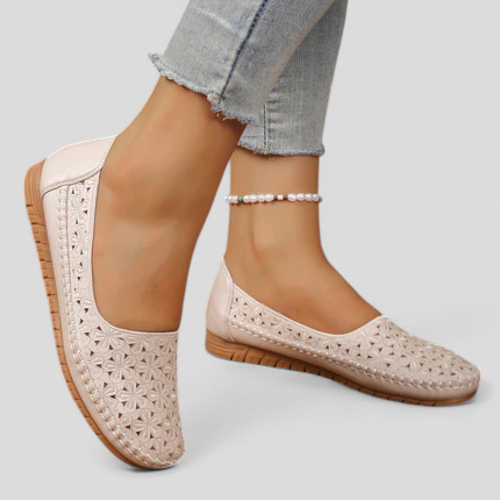 Šie batai sujungia komfortą ir gėlių dizainą. Iškirptos konstrukcijos dėka koja gali kvėpuoti su gaivumu ir elegancija.
