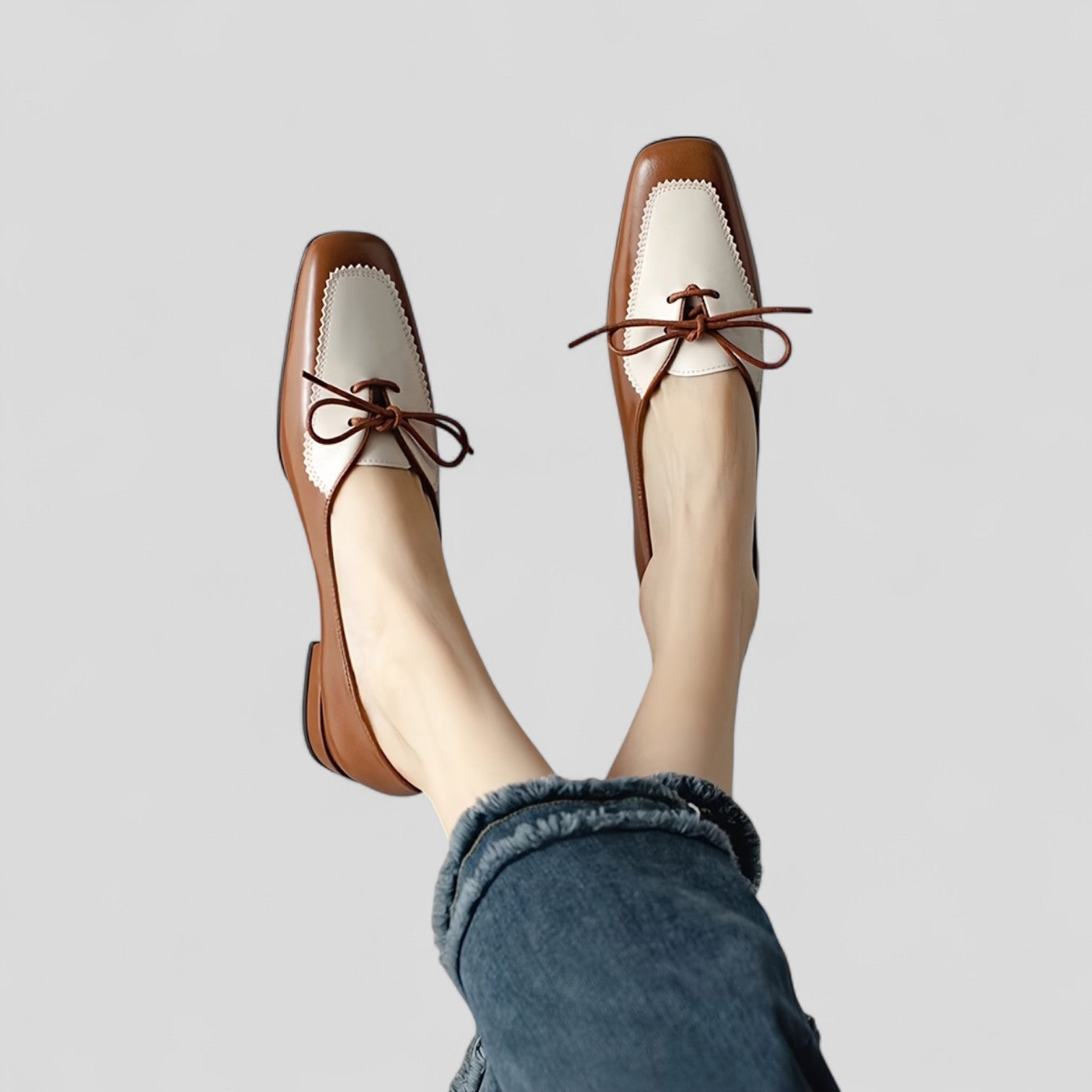Mokasīns Elegants: Atraskite tobulą stiliaus ir komforto derinį su mūsų elegantiškais mokasīnais. Su delikatu kaspinu priekyje ir žemu kulnu, šis batų dizainas yra šiuolaikiškas ir universalus.