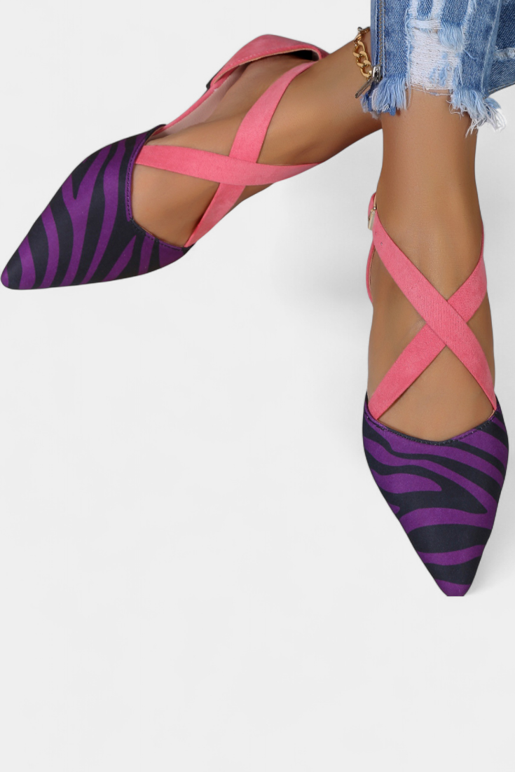 Balerinas Fenna com Padrão de Zebra e Tiras Cruzadas