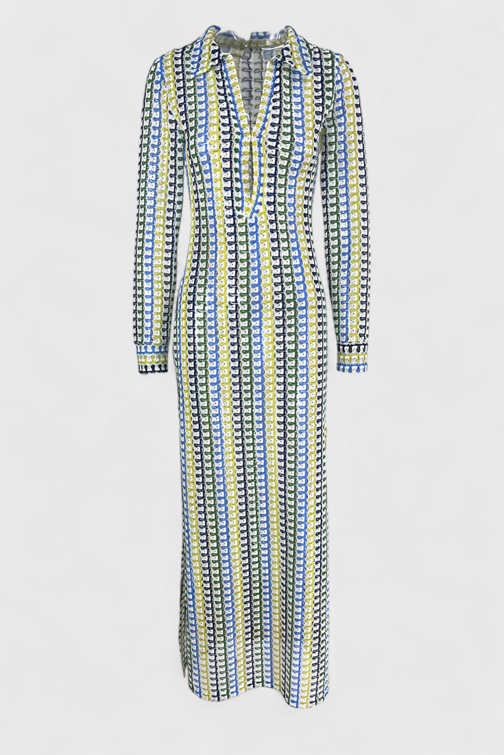 Vestido Crisanta em Cores Variadas e Com Mangas Longas