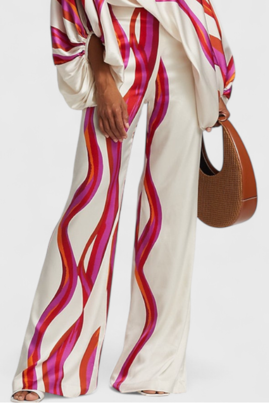 Sybella Dviejų Dalių Komplektas su Atvirais Petnešomis ir Platais Kelnėmis su Raštu