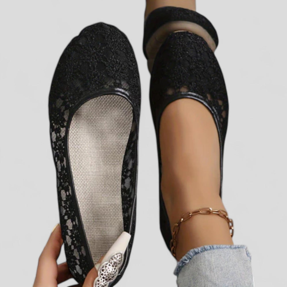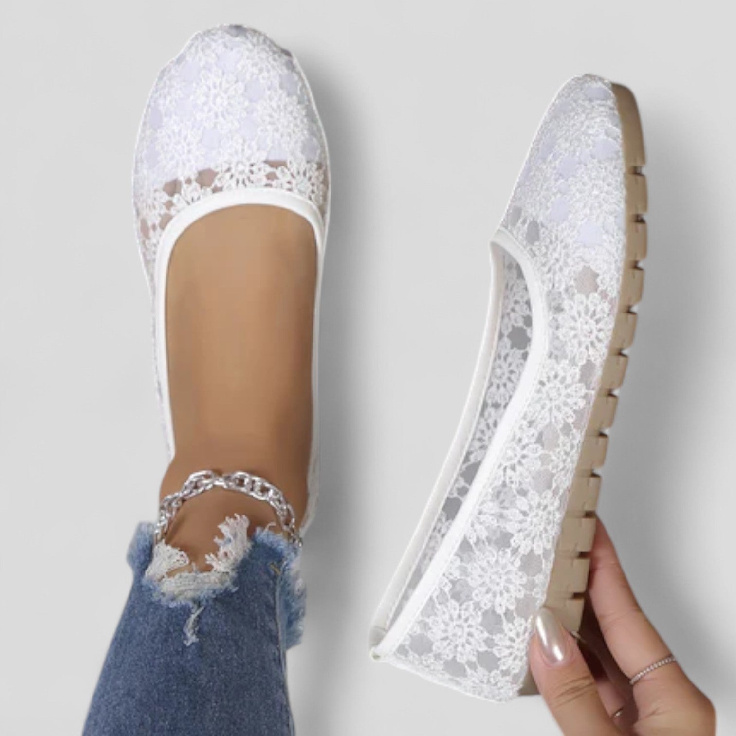 Šios delikatės nėriniuotos balerinos su gėlių raštu yra moteriškos, elegantiškos ir labai patogios. Idealiai tinka pavasariui ir vasarai.
